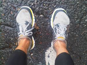 <-“Livestrong” shoes all muddied up from today’s run.