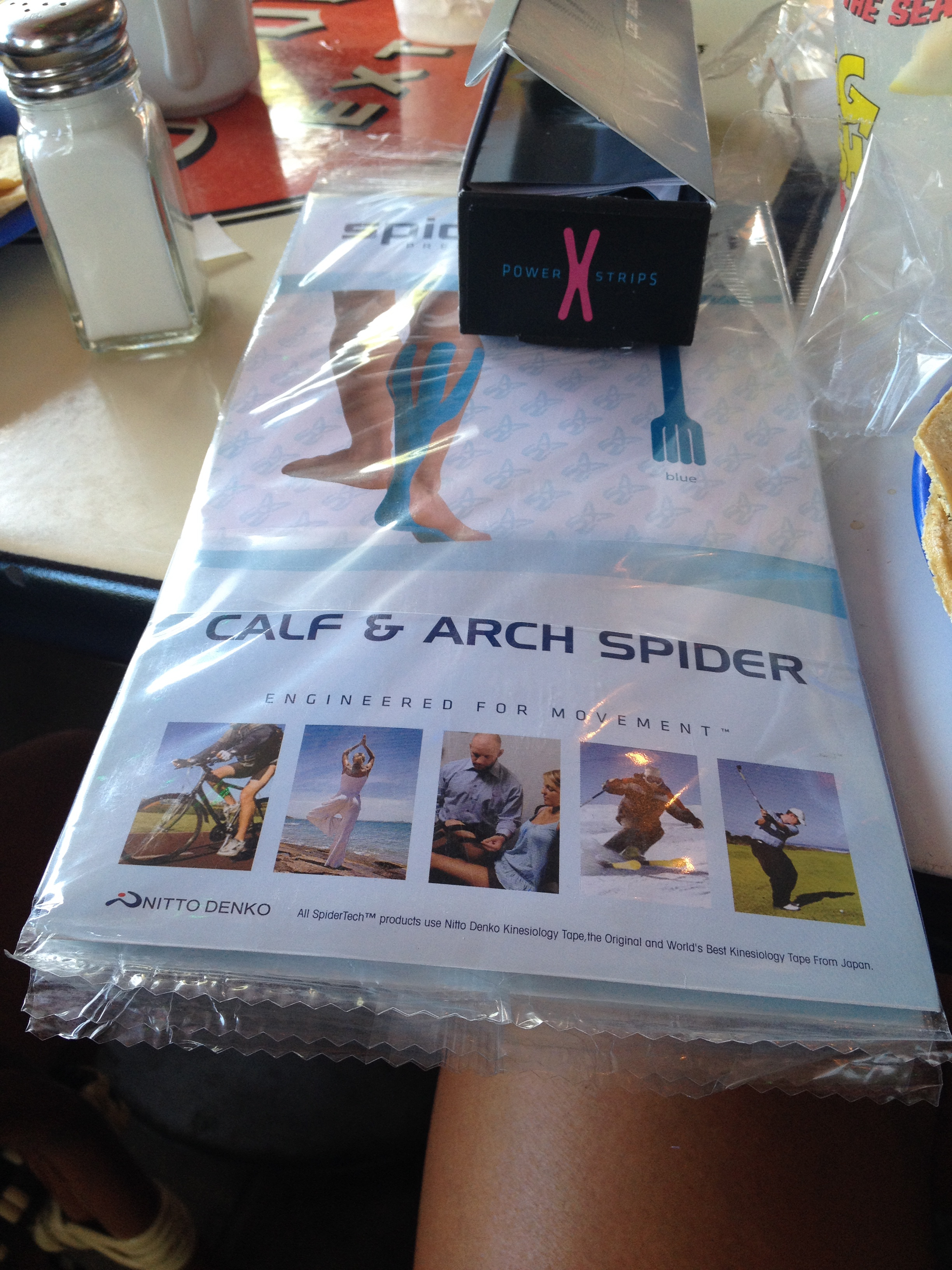 “SpiderTech tape is a non-medicated cotton kinesiology tape that you apply to your body wherever it hurts. SpiderTech is the first to provide convenient, standardized and easy to use Pre-Cut Kinesiology Tape Applications, called “Spiders”. The use of SpiderTech™ kinesiology tape applications results in a simple and effective approach to support strained muscles and joints and prevent further injury…” (source SpiderTech website)