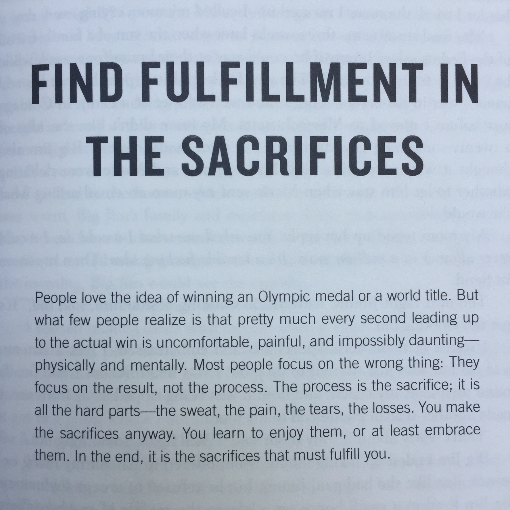 This passage illustrates how difficult but rewarding it can be to initiate change in our lives to work towards our dreams, in and out of sport. Any athlete that I work with hears it to no end that I want them to focus on the process. But it’s not just “the process,” in practicality it’s you (consciously) recommitting day in and day out to being out for your comfort zone. It’s the willingness to no longer hide from the patterns or behaviors. It’s committing to the small steps each day, even if you question “is it worth it? will this make a difference?” It’s embracing that this too is the mark and message of your life.
