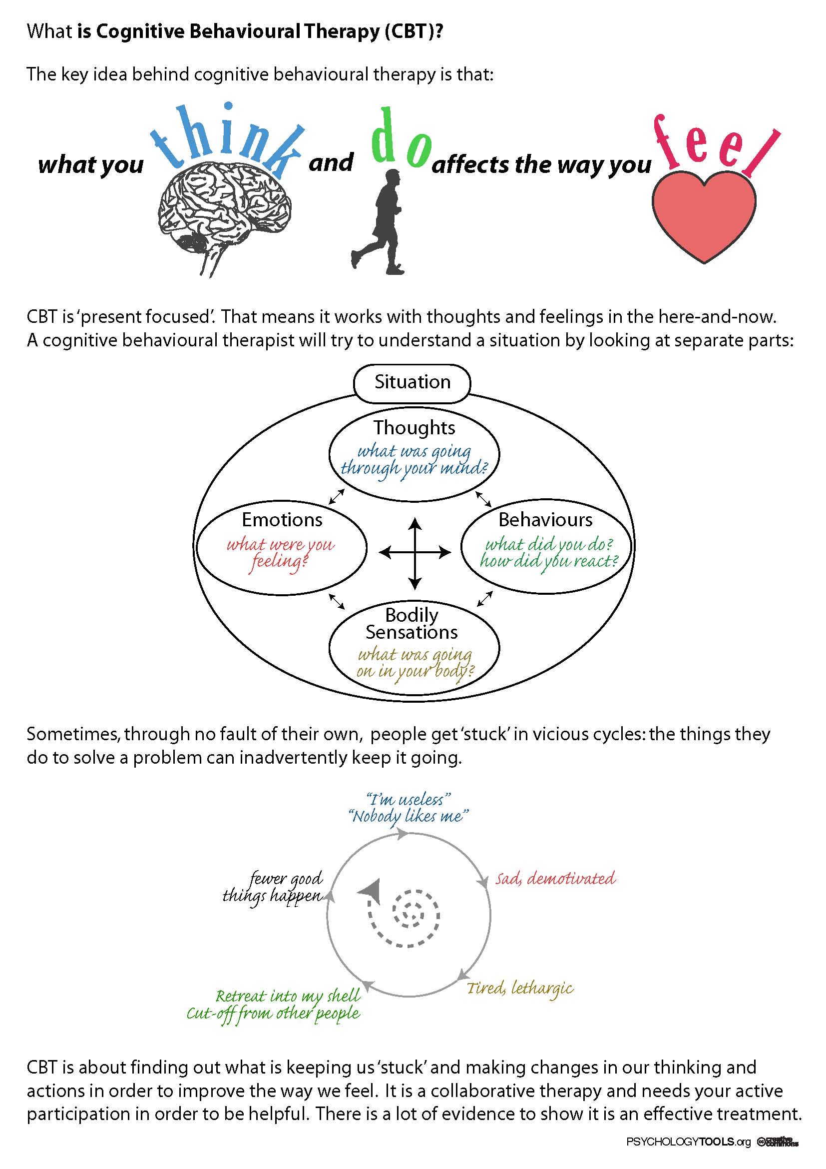 This diagram below illustrates (very simplistically) in the CBT model how difficult it can be to change. It’s not as easy as “thinking positive.” To make real and lasting change many factors have to align, not to mention the daily practice of mental training. Can you see how the below illustration applies to sport?