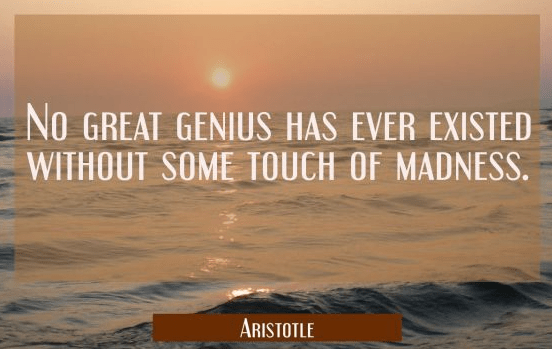 “There is no great genius without some touch of madness.” Aristotle
